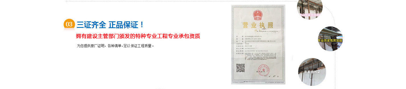 是滄州加固施工公司的企業,具備結構補強資質,并通過ISO9001:2000國際質量管理體系認證、環境管理體系認證、安全管理體系認證!" />